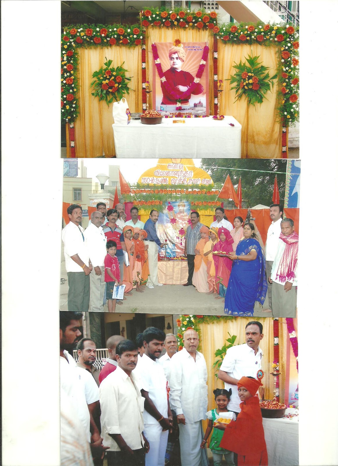 In Vellore District in 20 junctions 1000 banners were displayed. Almost all shops and houses offered pushpanjali and participated in the celebrations. The district was full of saffron flags. Hundreds of children depicted as Swami Vivekananda and a rally was organized. Various programmes like debate session, quiz etc. was organized in the Arcot Bus Stand itself through the day. State Committee President inaugurated the celebrations. Various programmes like planting trees, blood donation camps were also part of the celebrations.