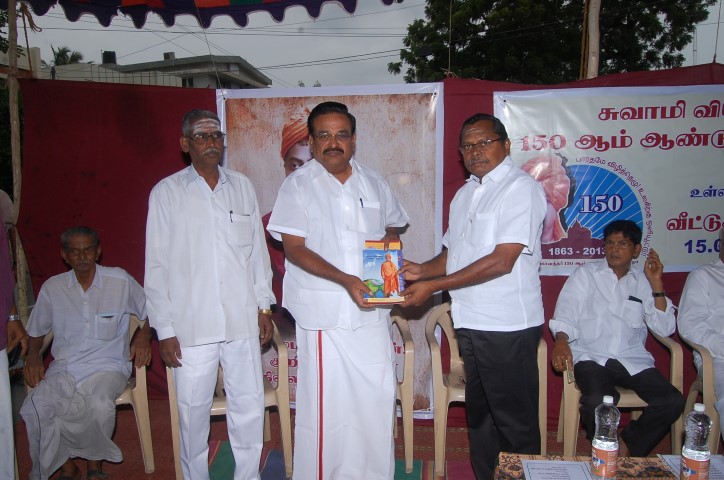 As a part of 150th year celebrations of Swami Vivekananda, door-to-door contact programme was initiated by Sri A Ganesamurthy MDMK Member of Parliament, Erode Constituency on 15th August, 2013. Sri Sivanandan, Secretary of Sengunthar Group of Educational Institutions and other social leaders participated in the programme.
