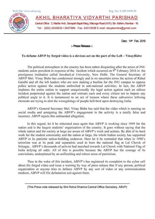 political organization or anyone tries to defame ABVP by any sort video or any