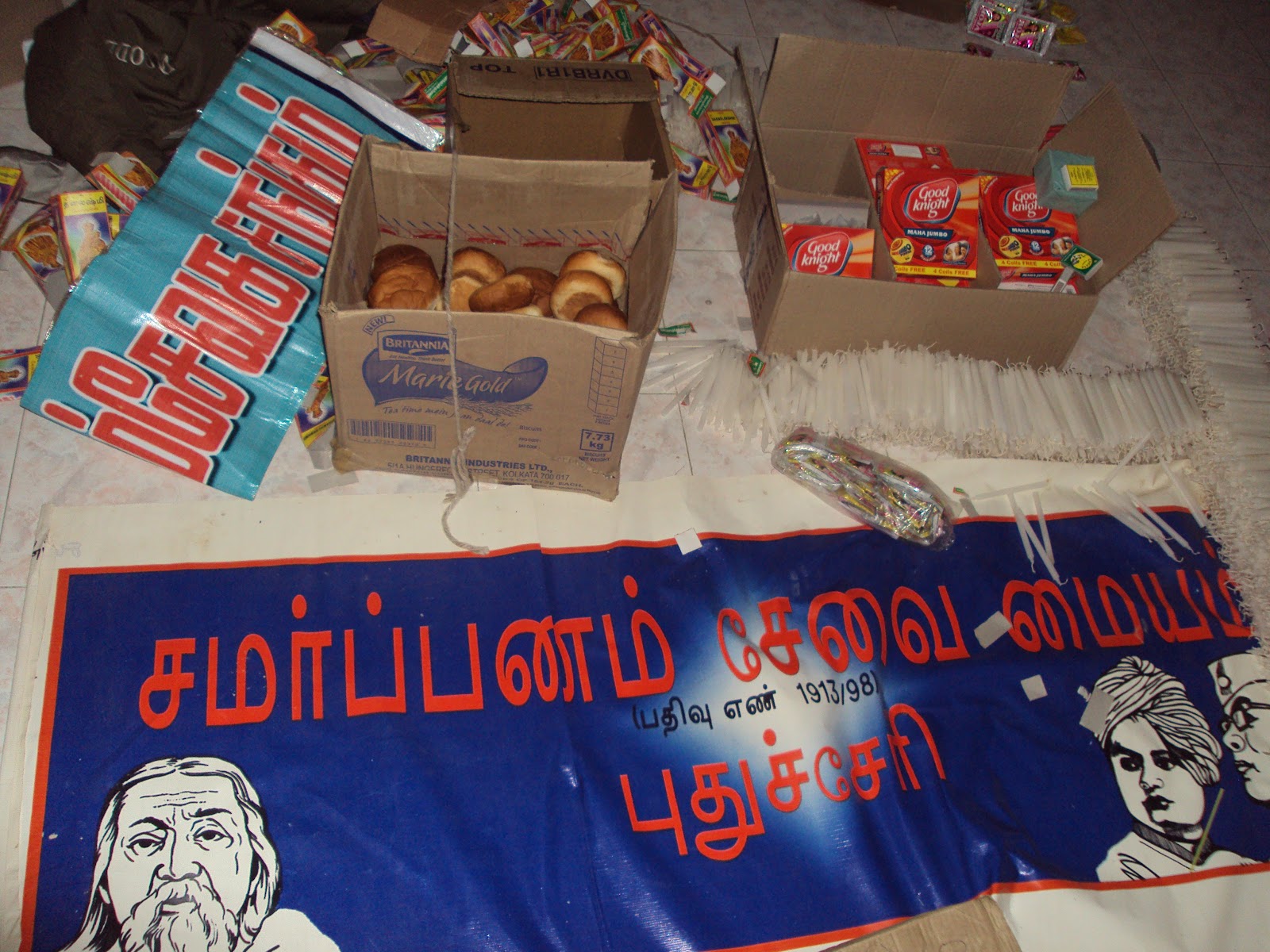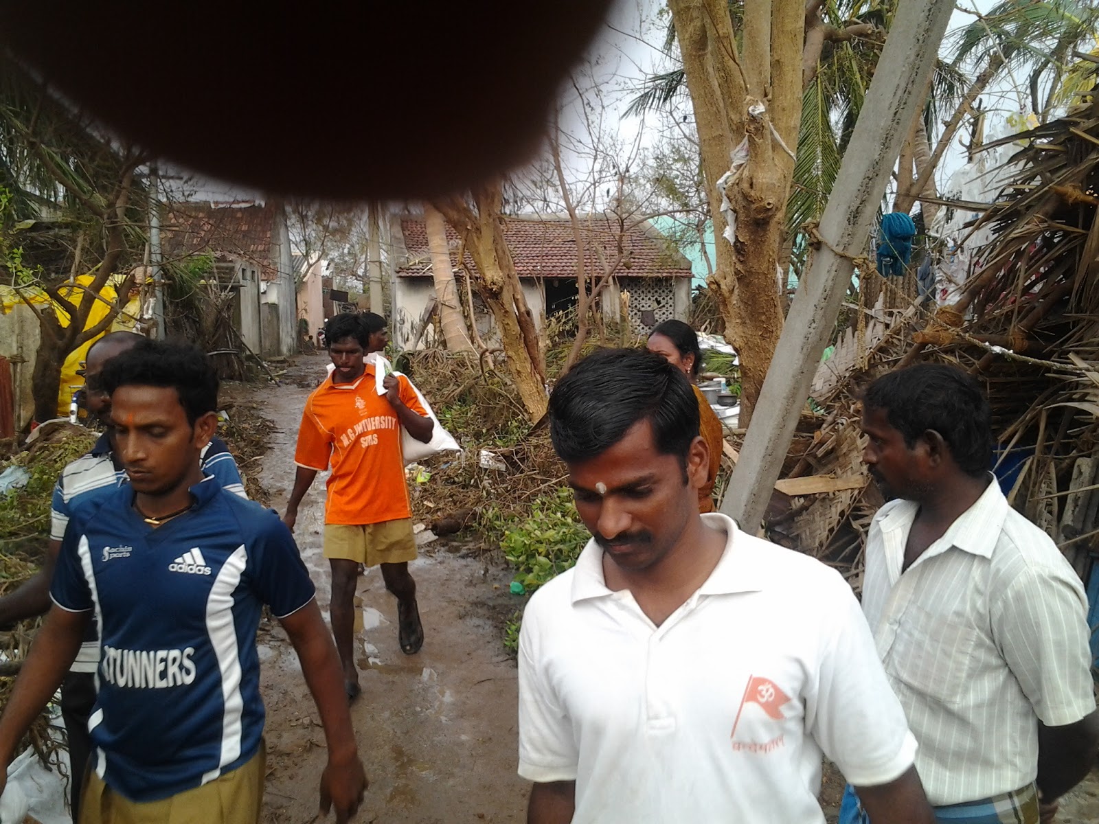 Gusty winds and torrential rains of Cyclone ‘Thane’ hit the coastal areas of Chennai, Cuddalore and Puducherry (UT). Several trees, street lamp posts and electric poles were uprooted causing extensive damage to the road and electrical network. The Prathamic Shiksha Varga of Puducherry Vibhag was concluded (on Saturday, December 30, 2011) one day in advance in order to carry out the relief work. Initially, RSS volunteers did field work to assess the extent of damage. Since there was complete breakdown of power supply throughout the two districts of Cuddalore and Pondy, it was ascertained that there is an urgent requirement of candles, mosquito coils, match boxes, and also drinking water.