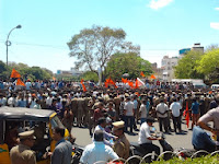 A recent city incident of eve teasing and an organised gang abetting it has shocked Chennai residents. A woman aspiring for IAS, while walking on the footpath of Mannadi Salai, Chennai, was allegedly teased by boys from a Muslim street, who also tried to misbehave with her. When her brother questioned them he was assaulted by the group. When the family tried to lodge a complaint with the local police, Jihadi outfits could gather a crowd of 500, which threatened the family with dire consequences by the hooligans. Some miscreants also damaged the car of city secretary of Hindu Munnani, Shri Elangovan when he came to visit the spot. As the news spread, hundreds of Hindu Munnani volunteers also staged a demonstration at the police station demanding the arrest of the culprits. One Shahjehan was picked up by the police. The Injured girl and her brother were admitted in the Stanley Hospital. Representatives of Hindu Munnani and Sri Kalyan Singh, Pranth Gau Seva Pramukh, visited the hospital and enquired about her well-being. Hindu Munnani called for Bandh on February 25. Shops in and around Sowcarpet, Muthailpet were closed. A demonstaration demanding police action was organised near Old Police Commissioner’s Office, Egmore. More than 3,000 volunteers from various parts of the city participated in the protest. Sri Ram gopalan, Hindu Munnani founder, addressing the gathering said, “Citizens from various parts of the country live here. We will not allow such disrespect to our brothers and sisters. We are all the children of Bharat Matha”.