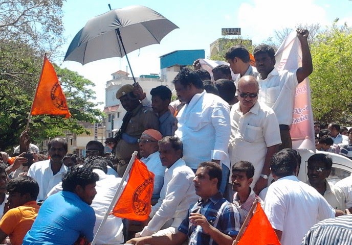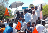 A recent city incident of eve teasing and an organised gang abetting it has shocked Chennai residents. A woman aspiring for IAS, while walking on the footpath of Mannadi Salai, Chennai, was allegedly teased by boys from a Muslim street, who also tried to misbehave with her. When her brother questioned them he was assaulted by the group. When the family tried to lodge a complaint with the local police, Jihadi outfits could gather a crowd of 500, which threatened the family with dire consequences by the hooligans. Some miscreants also damaged the car of city secretary of Hindu Munnani, Shri Elangovan when he came to visit the spot. As the news spread, hundreds of Hindu Munnani volunteers also staged a demonstration at the police station demanding the arrest of the culprits. One Shahjehan was picked up by the police. The Injured girl and her brother were admitted in the Stanley Hospital. Representatives of Hindu Munnani and Sri Kalyan Singh, Pranth Gau Seva Pramukh, visited the hospital and enquired about her well-being. Hindu Munnani called for Bandh on February 25. Shops in and around Sowcarpet, Muthailpet were closed. A demonstaration demanding police action was organised near Old Police Commissioner’s Office, Egmore. More than 3,000 volunteers from various parts of the city participated in the protest. Sri Ram gopalan, Hindu Munnani founder, addressing the gathering said, “Citizens from various parts of the country live here. We will not allow such disrespect to our brothers and sisters. We are all the children of Bharat Matha”.