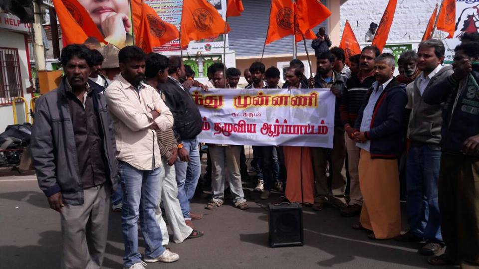 Sources say that the persons who attacked Shankar Ganesh were recently converted to Islam. Hindu Munnani called for a protest demonstration against the jihadi activities in Tamilnadu today and appealed for stern action against the miscreants. Thousands of Hindu Munnani activists participated in the protest demo. State President, Hindu Munnani, Shri Kadeswara Subramaniam strongly condemned the activities and said that Hindu Munnani will spread and create awareness of jihadi activities happening in Tamilnadu.