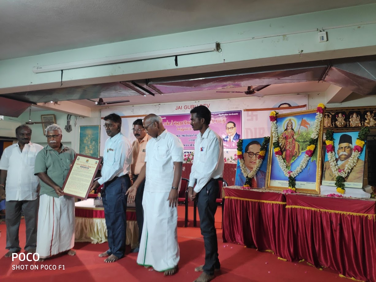 The august function started with a prayer song and a welcome speech given by Murugan ji, who welcomed the awardees, the gathered audience, quoted, “1st day of the chithirai month is always celebrated as Dr. Ambedkar’s birthday and the function is being held this day. Remembering the 1919, 100 years of the Jallian wala bagh, cruel shooting by General Dyer, the heinous act ever done by the British, towards which we had expected an apology, the least they did was to convey their regret, which is the latest news as of yesterday.