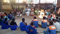 On the eve of Swami Vivekananda Birthday celebrations, a meet with Conservancy workers at Ward Office No.133, Chennai Corporation at West Mambalam was held. Shri Sambamurth ji initiated casual discussions about their daily livelihood, challenges faced in their work, atmosphere at home etc. They expressed that they were not able to give much attention to home as they have to start early in the morning by 4.00 a.m. to reach the work place by 6 a.m. for duty. In spite of all hurdles, they felt happy that they were able to educate their children in colleges. ‘Your duty is to clean the dirt and that is why you are paid’ – this was the attitude of the people before. But now, cleanliness awareness can be seen among the people and celebrities and they come forward to participate in keeping the place clean. Further, treating them as human beings and part of the society will motivate them to work more, they added.