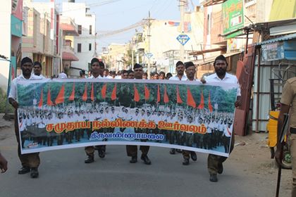 Vellore Vibhag Padasanchalan held at Thiruvannamalai. Vibhag Secretary Shri Nagarajan flagged off the march. Shri Kumaraswamy, State President addressed the gathering. Around 500 swayamsevaks participated. Polur Chinmaya Mission Swami Sagalaananda, Sonaachala