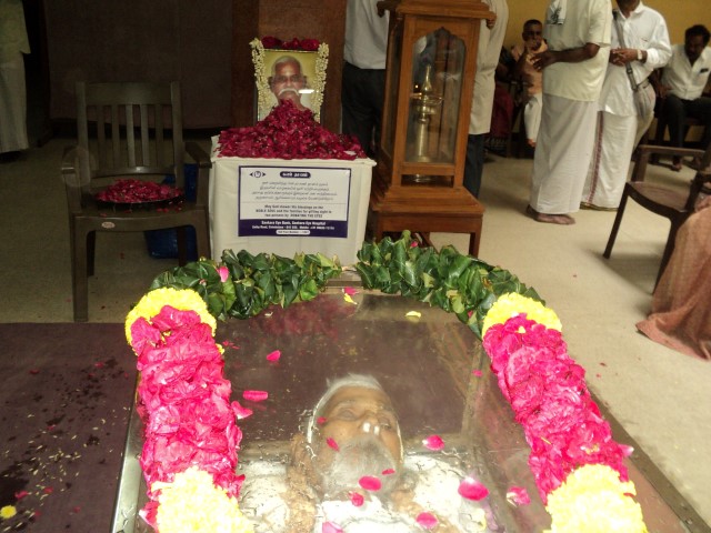 Anthim karyakram of Shri Subbarao, RSS Senior leader held at Shakthi Karyalaya today. Swayamsevaks, well-wishers offered floral tributes to the soul and shared their thoughts. Shri Gurumurthy, Shri Ramagopalan (Hindu Munnani), Shri RBVS Manian, Akhila Bharatha, Kshetra, Prantha Sangh Adhikaris were present. Karyakram ended with Anthim pranam tribute to Shri Subbarao Ji. His eyes were donated.