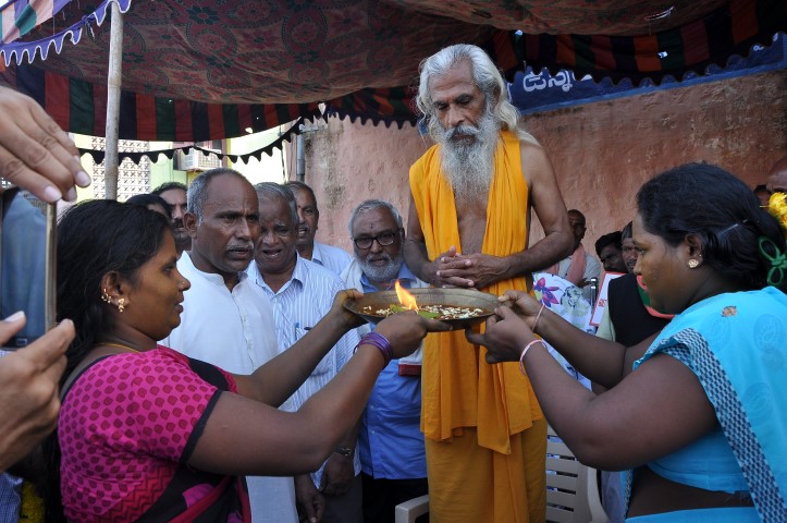 Sri Sitaram Ji sticks on for single meal a day. He will have no possessions or belonging with him. During his walk he sings bhajan songs. His routine would be as follows: Stay in a home during nights. While walking he sings bhajans. During afternoons, he goes in front of a house asks ‘Bhikshan Dehi’ and the lady at home will feed him for 3 times. Then he enters that home and eats only 3 handful of rice given by the Annapoorni. He gives lectures to mahilas at temples and meets the sick and elderly people. He also meets the youth and will have discussion with them. He emphasizes on 6 points – One should love his village, love the mankind, conserve the water, help elders and all living beings, and grama upliftment. For this, a monthly Milan can be encouraged and transformation can be brought into slowly. Yatra Slogan ‘Know Bharath; Be Bharath; Make Bharath” clearly visions the grama upliftment.