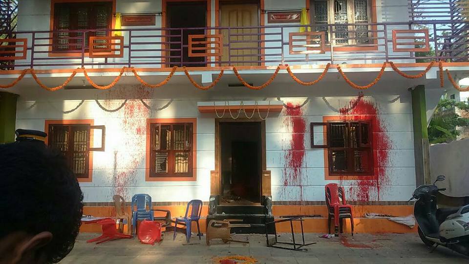 Keshav Smriti Sevalay, inaugurated in Perunthattil, Kannur by Prajna Pravah Akhil Bharatiya Samyojak Shri J. Nandakumar yesterday, has been vandalised by CPM miscreants in a highly despicable act of violence this morning (on May 1).
