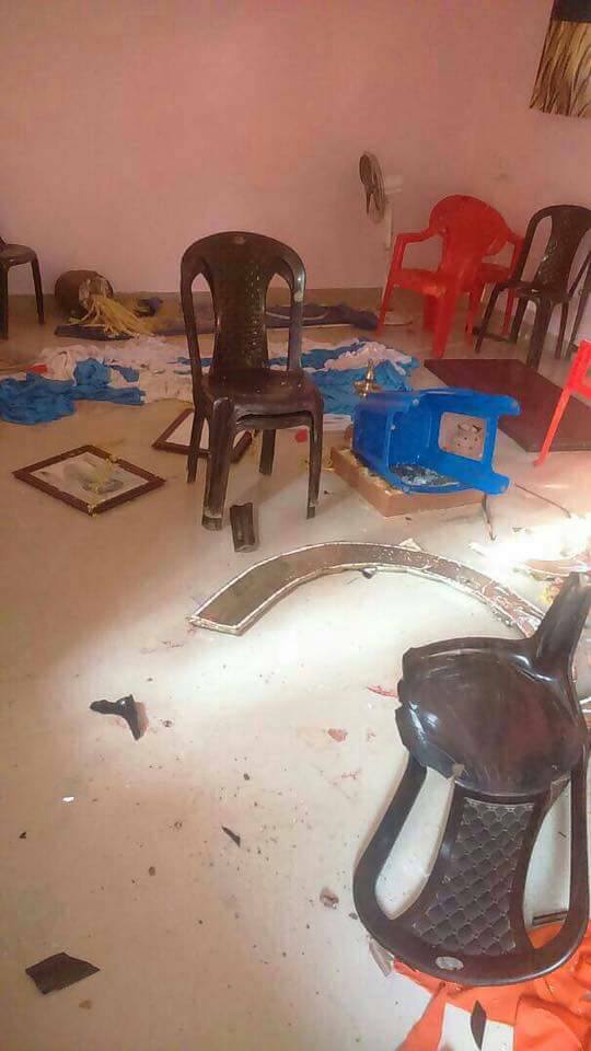 Barely a day after the inauguration, a group of armed CPM workers attacked the Sevalay and destroyed the properties belonging to the Sevalay. Perunthattil, is a CPM stronghold where other organisations are not allowed to undertake any political-cultural activity.