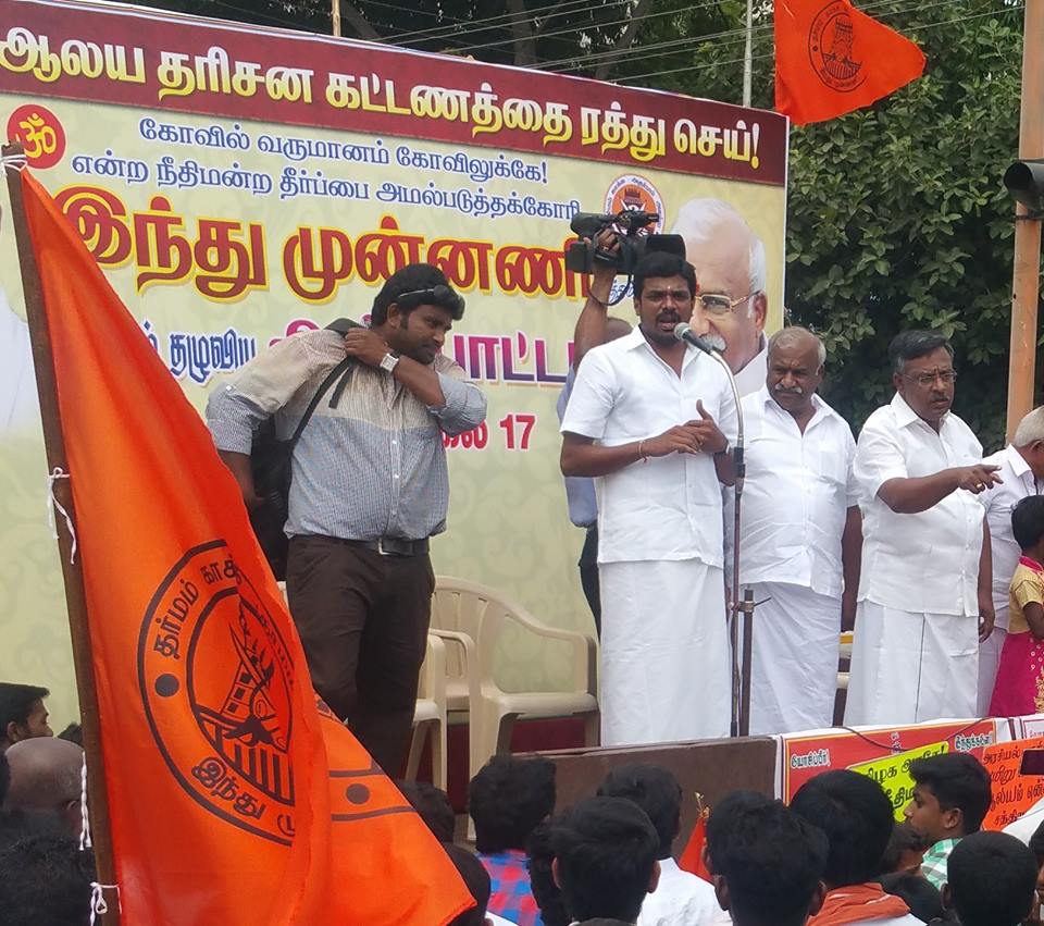 State wide protest demo demanding the State Government to withdraw ‘Darshan’ fee in the temples and give up the administration of temples. Citing the verdict dated 29th February, Hindu Munnani demanded that the temple funds should be used only for temple maintenance. Nearly 6000 Hindu temples are under the control of Hindu Religious and Charitable Endowments Department. 19082 people (540 women) participated in protest demo at 88 places across Tamilnadu. Shri Ramagopalan, Founder Hindu Munnani led the protest Demo in Chennai.