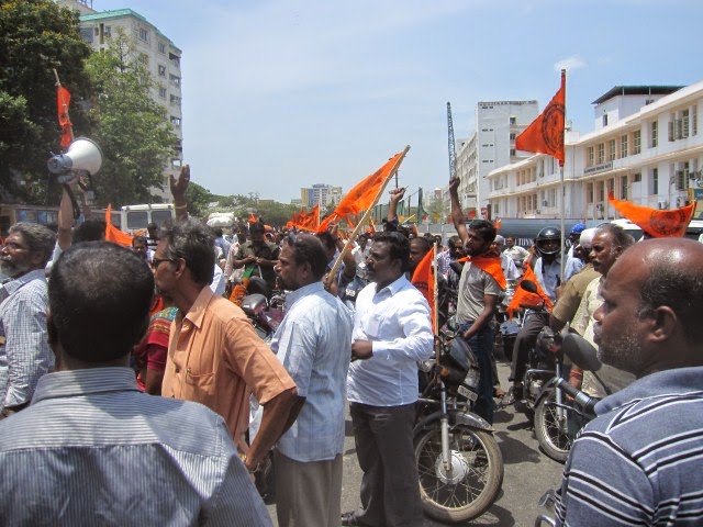 Hindu Munnani and parivar organizations called for a rally and protest demo throughout the State. Hundreds of Hindu activists of all parivar organizations staged protest demo. In Chennai, a rally was organized wherein 2000 activists from all parivar organizations participated. Sri Ramagopalan Hindu Munnani, Prant Sevak Pramuk Sri Ramarajasekar, Sri M D Shankar Vibhag Pracharak, Sri Elangovan HM City Secretary, Smt Vanathi Srinivasan BJP and adhikaris participated in the rally and paid their tributes to the departed soul. The last rites is to be performed at his native place Kanyakumari.