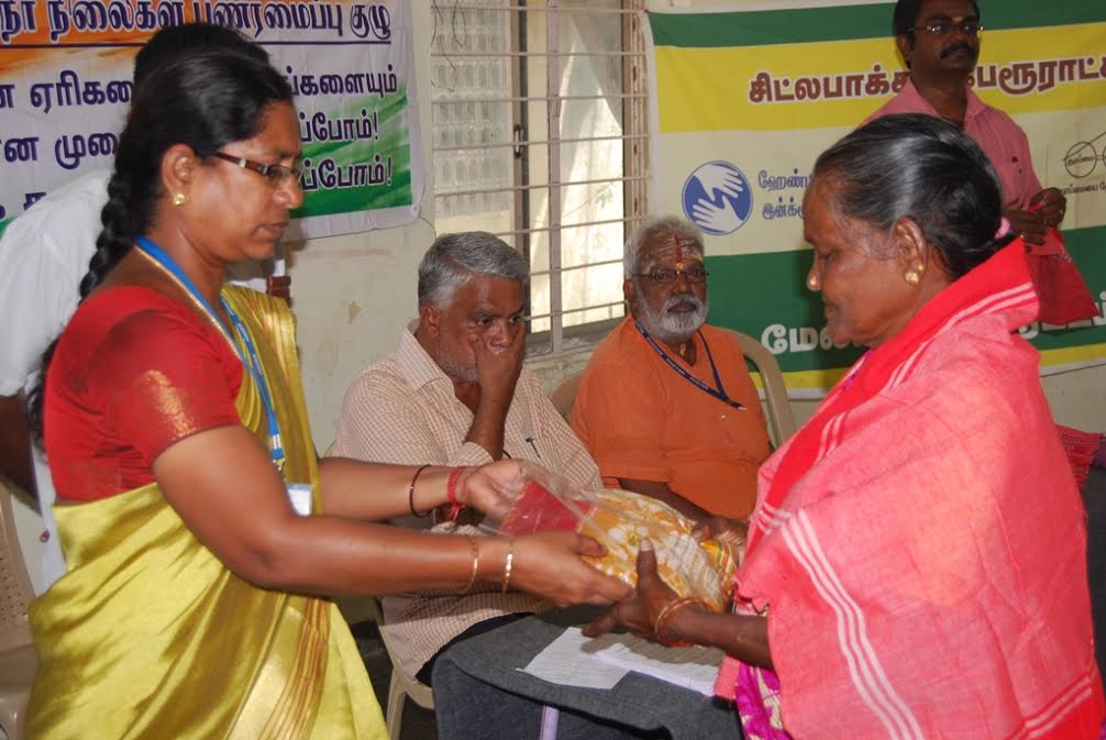 Netaji Waterbodies Preservation Forum felicitated around 100 conservancy workers living near Chitlapakkam, Chennai today. Celebrating Yugadhi with conservancy workers, a programme was organized to felicitate them with a shawl to honour their work. Sevabharati volunteers honoured them with Sarees and Dhotis.