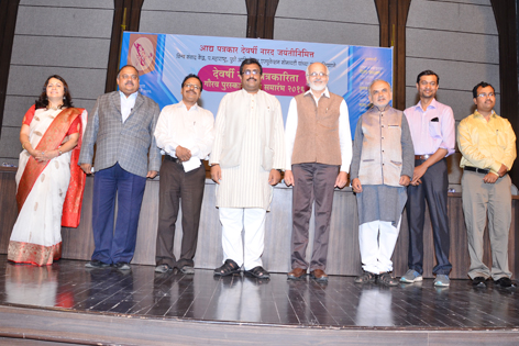 Pune, 23 July (VSK) – Journalism was once a mission but today it has crossed the limit even of professionalism. The arrogance has entered the journalism and journalists need to be more humble. The journalism can succeed only when it acquires humility, said Ram Madhav, the National General Secretary of Bharatiya Janata Party and noted thinker, here today. Shri. Ram Madhav was speaking at the Devarshi Narad Journalism Awards distribution ceremony given by the Vishwa Samwad Kendra, Paschim Maharashtra Prant. Senior journalist Dilip Dharurkar was confered with the Senior Journalist Award while Mustafa Attar was confered with the Young Journalist Award. Ganesh Kore was confered with Photographer Award while Shefali Vaidya was confered with the first ever Social Media Award.
