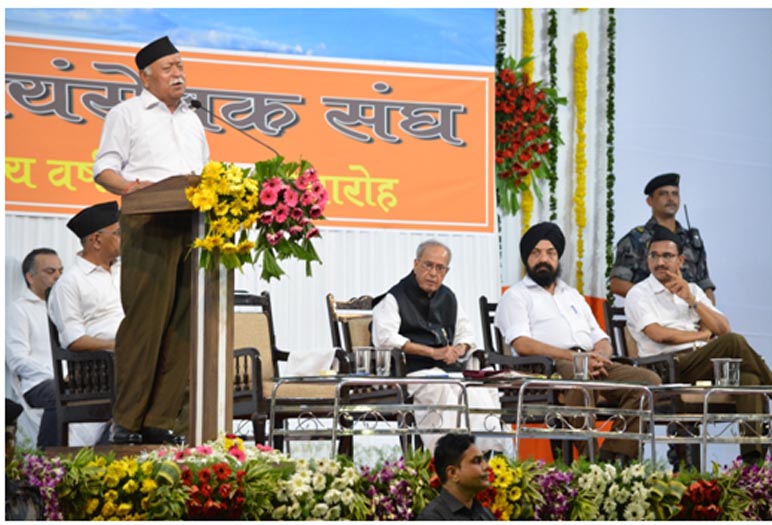 Breaking the RSS tradition Sarsanghchalak Dr. Mohan Bhagwat who spoke before the chief guest expressed gratitude to Dr. Pranab Mukherjee whom he described as rich in knowledge and rich in experience for accepting invitation to address Swayamsevaks drawn from all over the country.