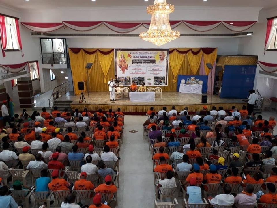 Earlier during the inaugural session, Shri Chittibabu recalled the selfless work and also the discipline of Swayamsevaks when they immediately arranged the disorderly kept footwear in proper manner. Hon’ble Minister Shri K. Pandiarajan said he was very happy to participate in this programme of noble cause and urged the audience to follow the values and ideals of Mahatma Gandhi. Shri D Shankar recalled Gandhiji’s efforts to eradicate untouchability and emphasised Swayamsevaks have been following this.