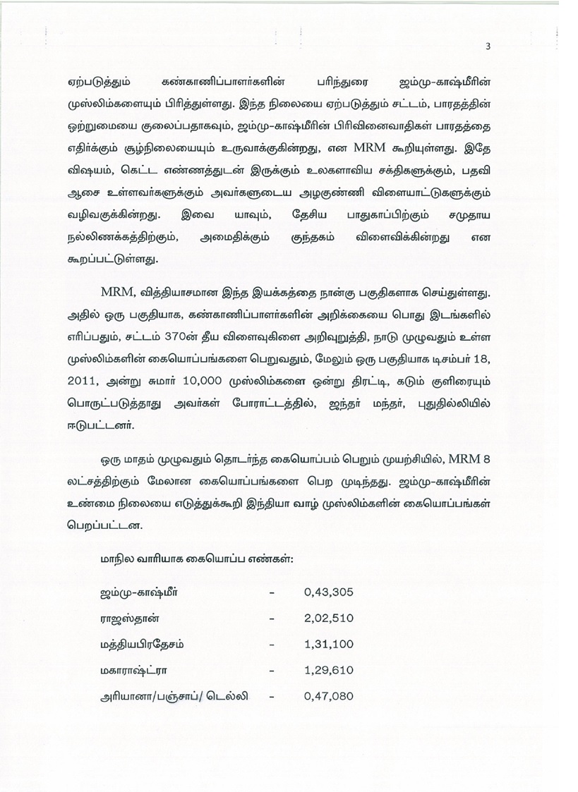 Muslim Rashtriya Manch (MRM) urges the President of India to reject Interlocutors' Report