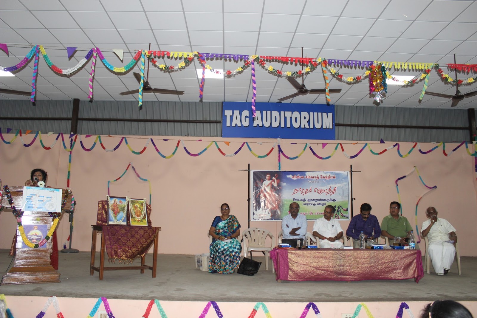 Srimathi Loganayaki of Kumudham Snagithi in her speech praised the literary gathering having given the apt name Narada Jayanthi, reminiscing her past. She emphasized on the parent guide to the children at young age. Appealing women on the need to have intelligence and knowledge, she said the times are changing from being a modern society now is going back to traditional ways.