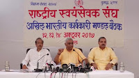 RSS All India Executive Council Meet of Rashtriya Swayamsevak Sangh begins at Sharda Vihar Awasiya Vidyayala Bhopal today. In the meeting, the expansion of Sangh work, exchanging the experience, achievement of any work in the state will be shared/presented in the meet. Action plan for the next three years will also be discussed, said Dr. Manmohan Vaidya, RSS Akhil Bharatha Prachar Pramuk at the press conference on October 11. Shri Narendra Singh Thakur, RSS Akhil Bharatha Sah Prachar Pramuk and Shri Ashok Agarwal, Prant Karyawah were present. State Presidents, State Organizers, State Secretaries of RSS – around 300 from 42 prants will be attending the Executive Council Meet. Earlier in the meeting of the Executive Board, the officers of various organizations were also involved.The meeting of officials of various organizations has been held in Vrindavan. RSS National bearers of organizations like Vanavasi Kalyan Ashram, Akhil Bharatiya Vidyarthi Parishad, Vishwa Hindu Parishad, Kisan Sangh, Vidya Bharati and BJP will be attending this meet. In this meet, only action plan of Sangh activities will be discussed. Also the work done in the last six months will be evaluated and the achievements will be presented. In the past year, the work of the RSS has increased rapidly. At present, the shakas are operating at almost 50 thousand places. In Sangh, the election of Sarkaryavah is done every three years. The term of the present General Secretary is being completed in March 2018. With this vision, the next three year plan will be considered in the meeting. In response to a question, he said that on the anniversary of Dr Mohan Bhagwat, the Sarsanghchalak, on VijayaDashami, there has been discussion among intellectuals in 20 places. The Sangh interacts with the enlightened class from time to time. The Sangh wants that other organizations and individuals come in the field of social organization and person building. In yet another question on the recent Rahul Gandhi’s remarks on RSS, Dr.Vaidya said, “Deliberately concocted baseless reports appeared in some media that RSS will consider entry of women in shakhas (reportedly). RSS works with men only in Shakas and through them we connect with their families. Shakha work among women is being conducted by Rashtra Sevika Samiti. In all programs and campaign in society, women also are participating. Women create an atmosphere of co-operation in families to support RSS.” He further said that RSS by its constitution is not a political party for Congress to compare with. They should compete with BJP which is political.