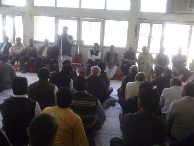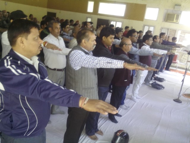 Dr. Devprasad Bhardwaj, Pranth Karyawah of RSS Haryana at a RSS meeting