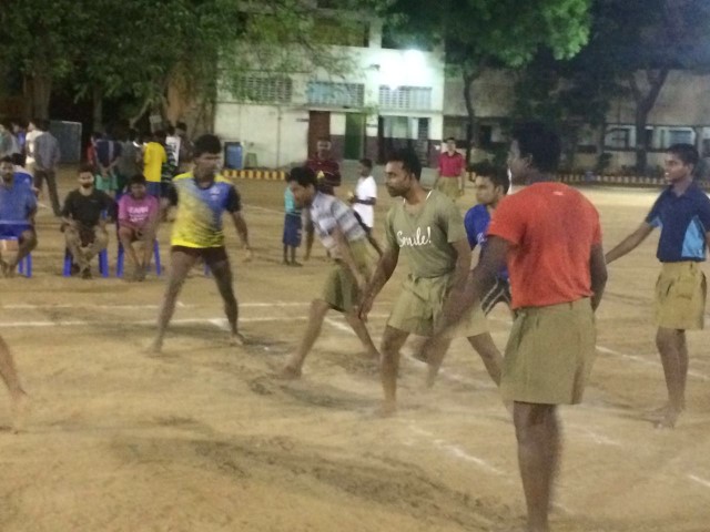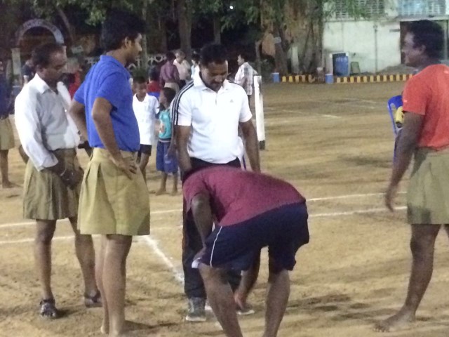 RSS Ambattur Bhag of Chennai conducted Kabaddi competition among Nagar swayamsevaks. 72 swayamsevaks in six teams from Eleven nagar (42 bastis) of Ambattur Bhag represented. Shri Gopalakrishnan, Ambattur Bhag Karyavah, Shri Narendra, Sah Karyavah, Ambattur Bhag, Shri Pradeep Saabhu Ji, Bhag Sanghachalak, Shri Suresh Mahanagar Kudumba Prabodhan guided the participants. Thirumullaivoyal Nagar swayamsevaks won the competition.