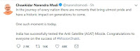 It is a great historic day for Bharat. Today Bharat has successfully tested the Anti-Satellite (A-SAT) Missile. Prime Minister Shri Narendra Modi addressed the nation and conveyed this pride message.