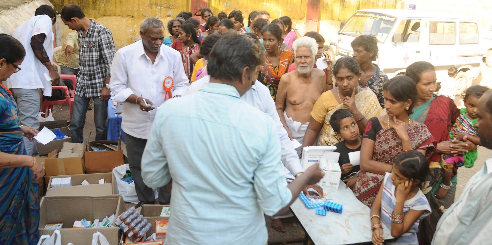 RSS-SEVABHARATHI flood relief health camp was held on 12/12/2015 at Government School, Periyapalayathamman Koil Street, Arunthathiar Nagar, Mettupalayam, Near Perambur Jamalia . A team of 4 doctors saw around 300 patients in the camp. Three doctors were from Kanchi Kamakoti CHILDS Trust Hospital, Chennai and one Dr.Kiran Kumar was from Jayabharath Hospital, Nellore, Andhra Pradesh. The patients were treated for flood related diseases like Athletes Foot, Gastroenteritis and Respiratory Infections.Locals Appreciated the service rendered by RSS.