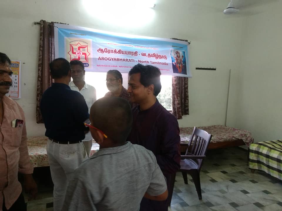 Colourful Rangolis within the Karyalaya and outside gave a pleasant festive look. Traditional games like pallankuzhi, paramapadam, ammanai etc. kindled the enthusiasm among visitors. Patti Vaidhiyam (traditional medical advice) had a great impact among the visitors. Display and demo by young students on the concept of Hinduism and Science was well received by the visitors. Games to youth attracted many. Quiz kindled the forgotten facts. Chit-Chat with adhikaris made the day memorable. Charcha on current topics brought clarity to the visitors. Ghosh vaadhan enthused the audience.