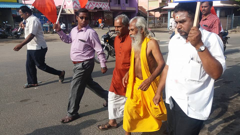 Shri Sitaram Kedilaya in yatra at the holy city Kanchipuram today along with Shri Ajit Prasad Mahapatra, RSS Akhila Bharatha Sah Seva Pramuk, Shri Sundara Lakshmanan, Akhila Bharatha Samyojak (Rashtriya Seva Bharati), Shri Sambamurthy, Pranth Karyavah (Uttar Tamilnadu), Shri Ramarajasekar, Prant Seva Pramuk (UTN), Shri Srinivasan, Sevabharati (UTN). Beginning the day with the darshan of Kamakshi Amman and Varadaraja Perumal, he visited Shri Ramanujachrya’s house (where he lived for some time) and the place of Maha Periyava.