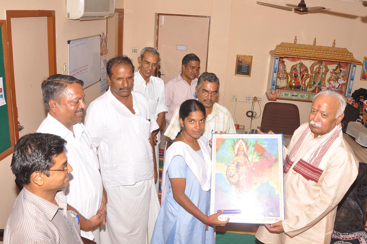 Parama Poojaneeya Sri Mohan Ji Bhagawat appreciated the efforts put forth by the Student when he was in Chennai participating in Dwatheeya Varsha Camp held at Vyasarpadi.